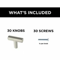 - Install: 1-1/4 in. Dia. kitchen cabinet knob, 30 screws included