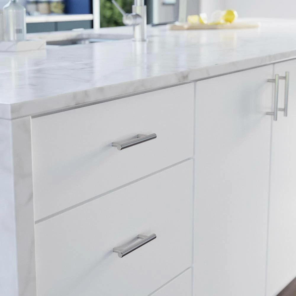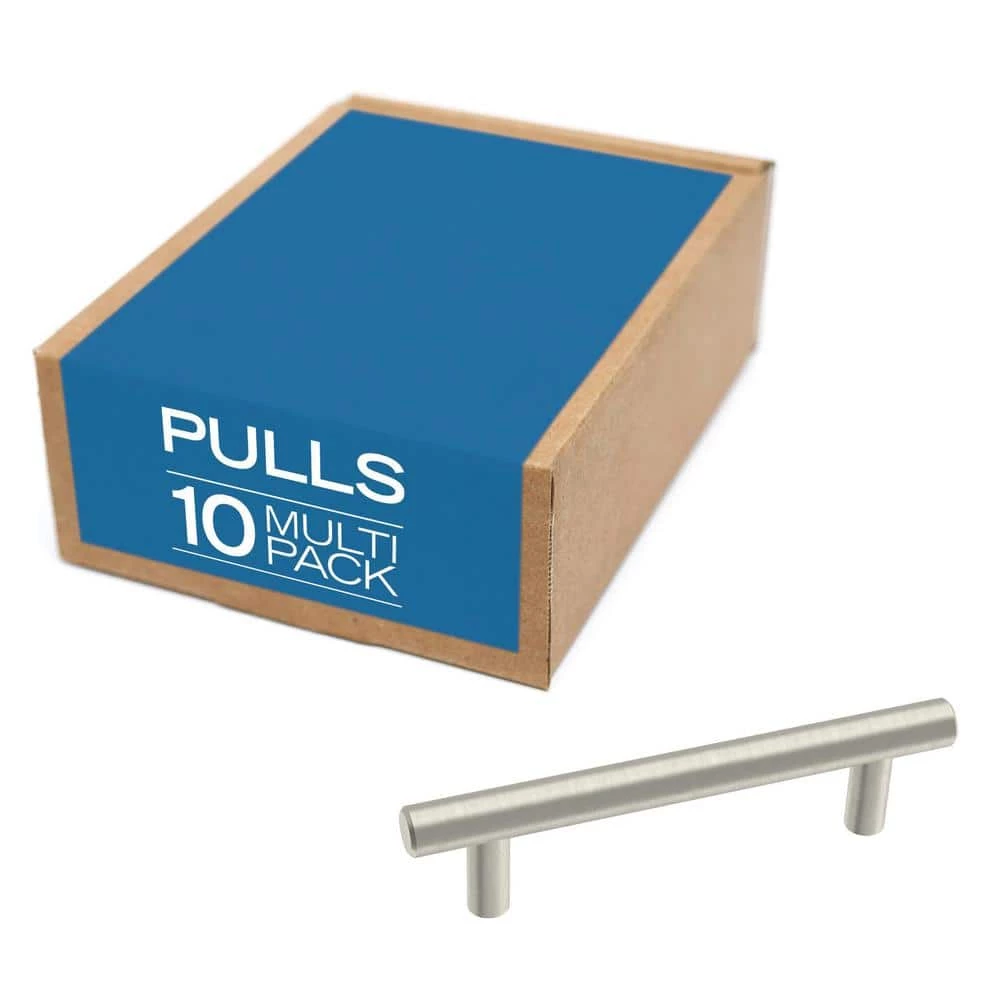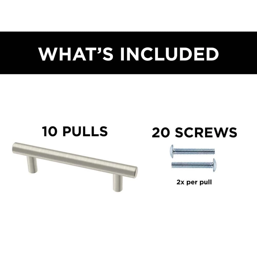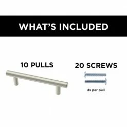 Simple is beautiful. Put the finishing touch on a room or entire home quickly with beautiful furniture handles that can go from the kitchen to the bedroom effortlessly. As a kitchen cabinet handle or a drawer pull, this lustrous silver cabinet pull is a lean and smooth cabinet hardware standout. The Simple Bar handle in stainless steel finish features round edges with a 3-3/4 in. center-to-center, offering a comfortable grip on your cabinets and drawers. We offer modern trends, priced right for you. Made for you by Franklin Brass – with over 70-years in cabinet hardware – this line of modern pulls gives you pride in your home at a practical price. This 10-pack of silver cabinet handles is a fantastic value to upgrade your kitchen cabinets or other furniture hardware needs.