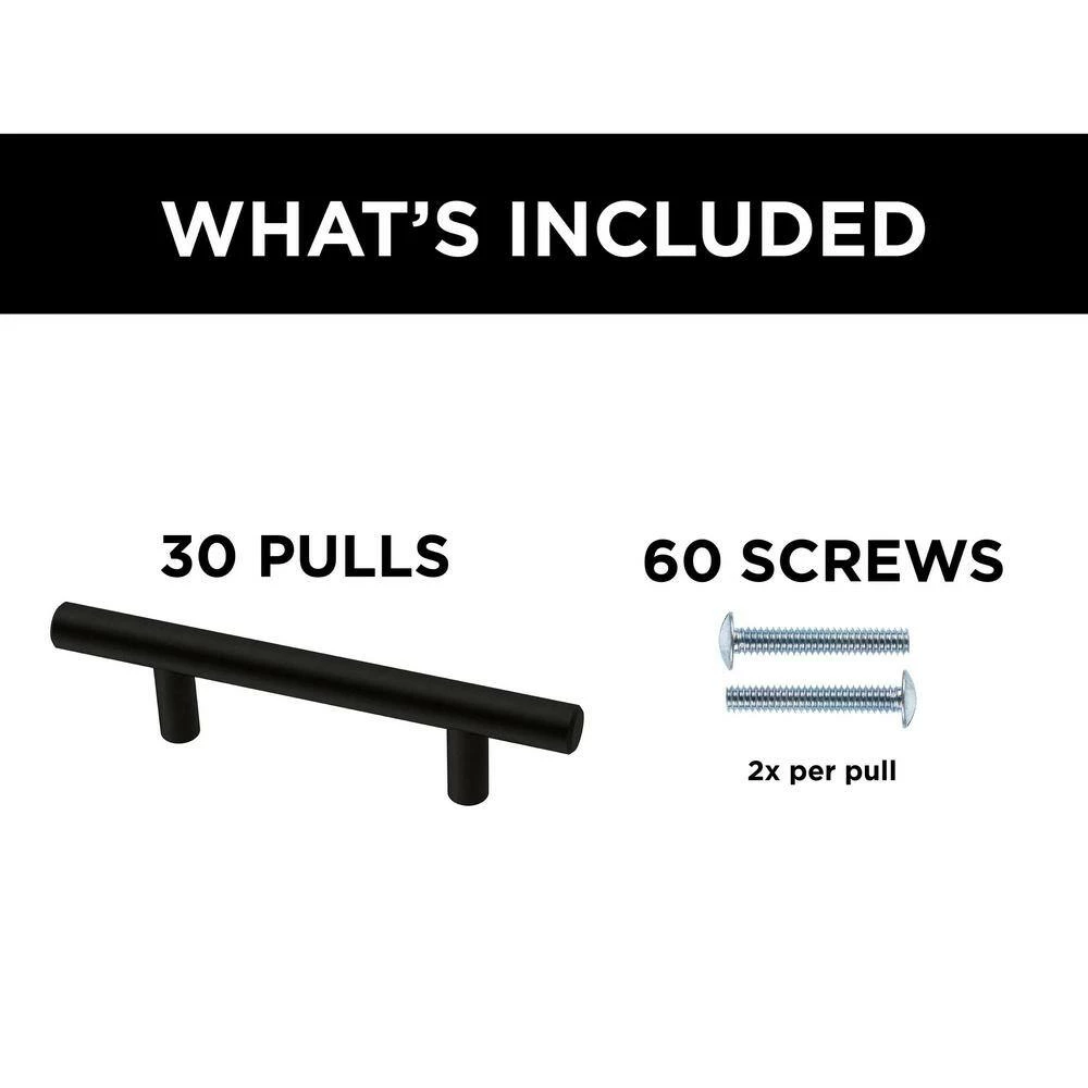 Simple is beautiful. Put the finishing touch on a room or entire home quickly with beautiful furniture handles that can go from the kitchen to the bedroom effortlessly. As a kitchen cabinet handle or a drawer pull, the Simple Bar black cabinet pull is the sophisticated cabinet hardware to complete your decor. This black pull features rounded edges with a 3 in. center-to-center, offering a comfortable grip on your cabinets and drawers. We offer modern trends, priced right for you. Made by Franklin Brass with over 70-years in cabinet hardware, this line of modern pulls gives you quality at a practical price. This 30-pack of black cabinet handles is a fantastic value to upgrade your kitchen cabinets or other furniture hardware needs.