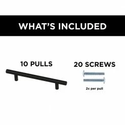 Simple is beautiful. Put the finishing touch on a room or entire home quickly with beautiful furniture handles that can go from the kitchen to the bedroom effortlessly. As a kitchen cabinet handle or a drawer pull, the Simple Bar black cabinet pull is the sophisticated cabinet hardware to complete your decor. This black pull features round edges with a 5-1/16 in. center-to-center, offering a comfortable grip on your cabinets and drawers. We offer modern trends, priced right for you. Made by Franklin Brass with over 70-years in cabinet hardware, this line of modern pulls gives you quality at a practical price. This 10-pack of black cabinet handles is a fantastic value to upgrade your kitchen cabinets or other furniture hardware needs.