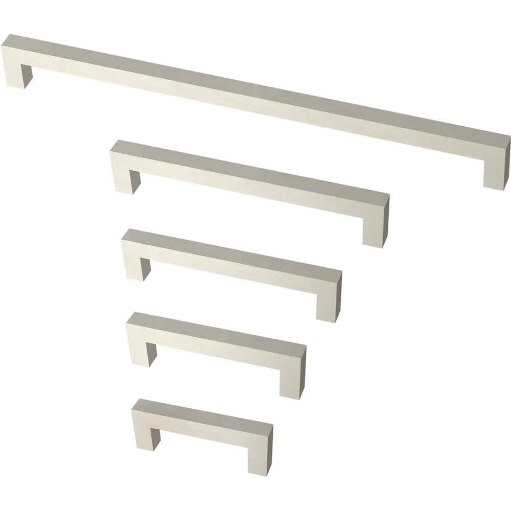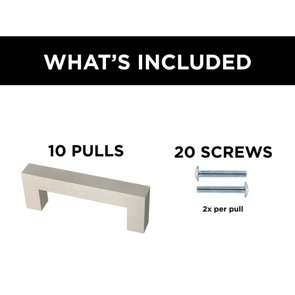 Simple is beautiful. Put the finishing touch on a room or entire home quickly with beautiful furniture handles that can go from the kitchen to the bedroom effortlessly. As a kitchen cabinet handle or a drawer pull, this lustrous silver cabinet pull is a lean and smooth cabinet hardware standout. The Simple Modern Square handle in stainless steel finish features square edges with a 3 in. center-to-center, offering a comfortable grip on your cabinets and drawers. We offer modern trends, priced right for you. Made for you by Franklin Brass – with over 70-years in cabinet hardware – this line of modern pulls gives you pride in your home at a practical price. This 10-pack of silver cabinet handles is a fantastic value to upgrade your kitchen cabinets or other furniture hardware needs.