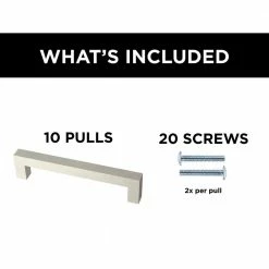Simple is beautiful. Put the finishing touch on a room or entire home quickly with beautiful furniture handles that can go from the kitchen to the bedroom effortlessly. As a kitchen cabinet handle or a drawer pull, this lustrous silver cabinet pull is a lean and smooth cabinet hardware standout. The Simple Modern Square handle in stainless steel finish features square edges with a 5-1/16 in. center-to-center, offering a comfortable grip on your cabinets and drawers. We offer modern trends, priced right for you. Made for you by Franklin Brass – with over 70-years in cabinet hardware – this line of modern pulls gives you pride in your home at a practical price. This 10-pack of silver cabinet handles is a fantastic value to upgrade your kitchen cabinets or other furniture hardware needs.
