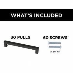 Simple is beautiful. Put the finishing touch on a room or entire home quickly with beautiful furniture handles that can go from the kitchen to the bedroom effortlessly. As a kitchen cabinet handle or a drawer pull, the Simple Modern Square black cabinet pull is the sophisticated cabinet hardware to complete your decor. This black pull features square edges with a 6-5/16 in. center-to-center, offering a comfortable grip on your cabinets and drawers. We offer modern trends, priced right for you. Made by Franklin Brass with over 70-years in cabinet hardware, this line of modern pulls gives you quality at a practical price. This 30-pack of black cabinet handles is a fantastic value to upgrade your kitchen cabinets or other furniture hardware needs.