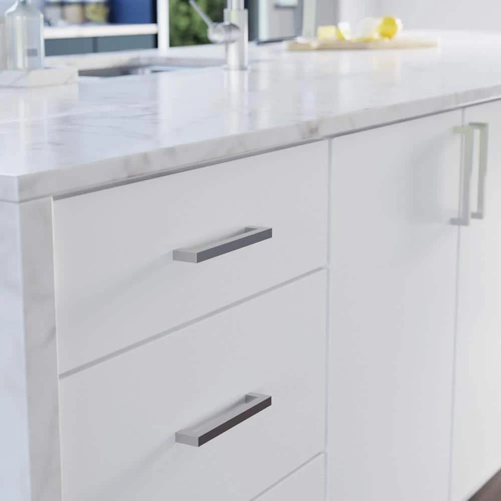 Simple is beautiful. Put the finishing touch on a room or entire home quickly with beautiful furniture handles that can go from the kitchen to the bedroom effortlessly. As a kitchen cabinet handle or a drawer pull, this lustrous silver cabinet pull is a lean and smooth cabinet hardware standout. The Simple Modern Square handle in stainless steel finish features square edges with a 6-5/16 in. center-to-center, offering a comfortable grip on your cabinets and drawers. We offer modern trends, priced right for you. Made for you by Franklin Brass – with over 70-years in cabinet hardware – this line of modern pulls gives you pride in your home at a practical price. This 30-pack of silver cabinet handles is a fantastic value to upgrade your kitchen cabinets or other furniture hardware needs.