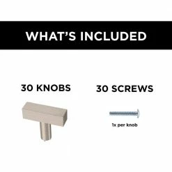 Simple is beautifulPut the finishing touch on a room or entire home quickly with beautiful furniture knobs that can go from the kitchen to the bedroom effortlessly. Need a kitchen cabinet knob or drawer handle upgrade. This silver cabinet knob is smooth, modern cabinet hardware piece with just the right amount of shine to complete your decor. This stainless-steel finished Simple Square Bar knob features squared edges with 1-1/4 in. Dia holding point on your cabinets and drawers. Showcase your personal style with an upgrade to your home’s hardware – you won’t believe how it elevates the whole room. We offer modern trends, priced right for you. Made for you by Franklin Brass – with 70-years in cabinet hardware – you can be sure you have a quality product at a practical price. This 30-pack of lustrous silver cabinet knobs is a fantastic value to upgrade your kitchen cabinets or other furniture hardware.