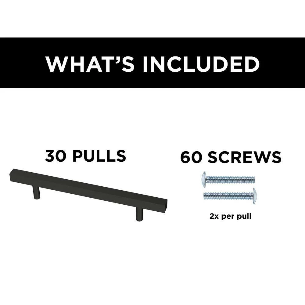 Simple is beautiful. Put the finishing touch on a room or entire home quickly with beautiful furniture handles that can go from the kitchen to the bedroom effortlessly. As a kitchen cabinet handle or a drawer pull, the Simple Square Bar black cabinet pull is the sophisticated cabinet hardware to complete your decor. This black pull features square edges with a 5-1/16 in. center-to-center, offering a comfortable grip on your cabinets and drawers. We offer modern trends, priced right for you. Made by Franklin Brass with over 70-years in cabinet hardware, this line of modern pulls gives you quality at a practical price. This 30-pack of black cabinet handles is a fantastic value to upgrade your kitchen cabinets or other furniture hardware needs.
