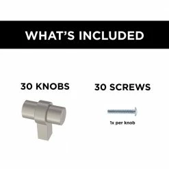 - Install: 1-1/4 in. Dia. kitchen cabinet knob, 30 screws included