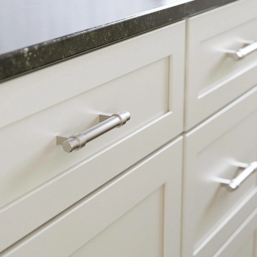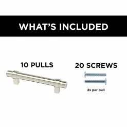 Simple is beautiful. Put the finishing touch on a room or entire home quickly with beautiful furniture handles that can go from the kitchen to the bedroom effortlessly. As a kitchen cabinet handle or a drawer pull, this lustrous silver cabinet pull is a lean and smooth cabinet hardware standout. The Simple Wrapped Bar handle in stainless steel finish features sleek lines with a 3-3/4 in. center-to-center, offering a comfortable grip on your cabinets and drawers. We offer modern trends, priced right for you. Made for you by Franklin Brass – with over 70-years in cabinet hardware – this line of modern pulls gives you pride in your home at a practical price. This 10-pack of silver cabinet hand1les is a fantastic value to upgrade your kitchen cabinets or other furniture hardware needs.
