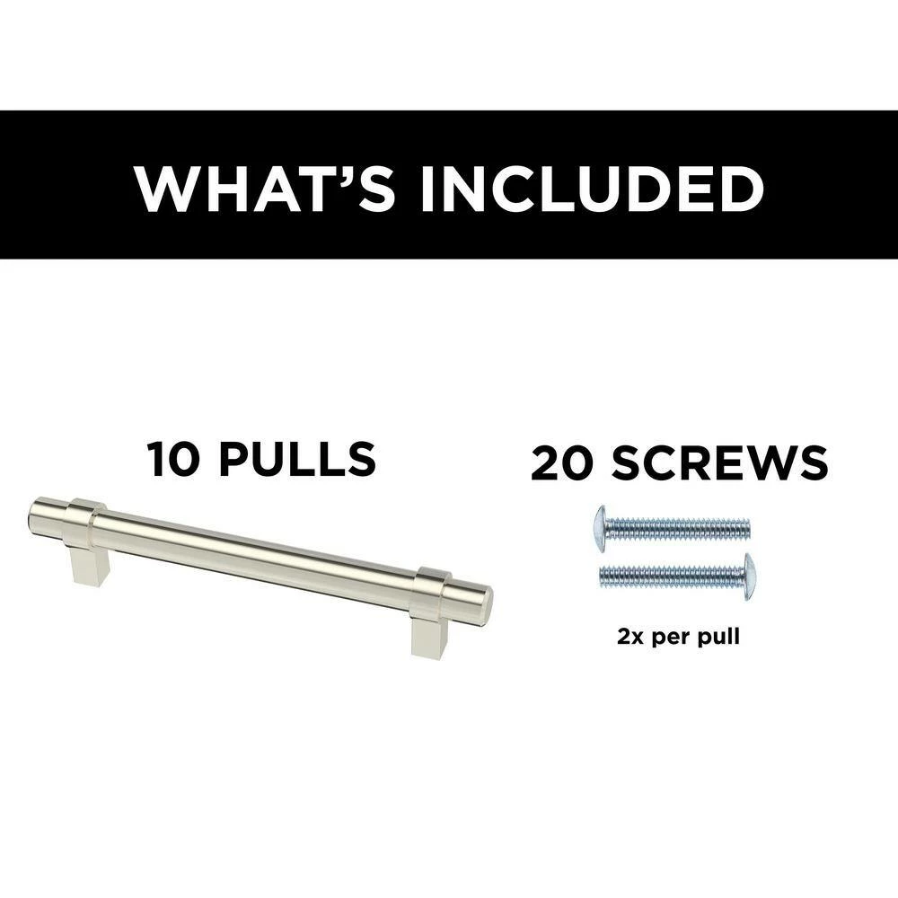 Simple is beautiful. Put the finishing touch on a room or entire home quickly with beautiful furniture handles that can go from the kitchen to the bedroom effortlessly. As a kitchen cabinet handle or a drawer pull, this lustrous silver cabinet pull is a lean and smooth cabinet hardware standout. The Simple Wrapped Bar handle in stainless steel finish features sleek lines with a 5-1/16 in. center-to-center, offering a comfortable grip on your cabinets and drawers. We offer modern trends, priced right for you. Made for you by Franklin Brass – with over 70-years in cabinet hardware – this line of modern pulls gives you pride in your home at a practical price. This 10-pack of silver cabinet hand1les is a fantastic value to upgrade your kitchen cabinets or other furniture hardware needs.