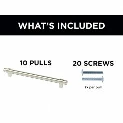 Simple is beautiful. Put the finishing touch on a room or entire home quickly with beautiful furniture handles that can go from the kitchen to the bedroom effortlessly. As a kitchen cabinet handle or a drawer pull, this lustrous silver cabinet pull is a lean and smooth cabinet hardware standout. The Simple Wrapped Bar handle in stainless steel finish features sleek lines with a 7-9/16 in. center-to-center, offering a comfortable grip on your cabinets and drawers. We offer modern trends, priced right for you. Made for you by Franklin Brass – with over 70-years in cabinet hardware – this line of modern pulls gives you pride in your home at a practical price. This 10-pack of silver cabinet hand1les is a fantastic value to upgrade your kitchen cabinets or other furniture hardware needs.