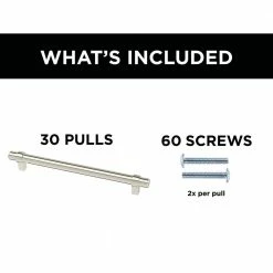 Simple is beautiful. Put the finishing touch on a room or entire home quickly with beautiful furniture handles that can go from the kitchen to the bedroom effortlessly. As a kitchen cabinet handle or a drawer pull, this lustrous silver cabinet pull is a lean and smooth cabinet hardware standout. The Simple Wrapped Bar handle in stainless steel finish features sleek lines with a 7-9/16 in. center-to-center, offering a comfortable grip on your cabinets and drawers. We offer modern trends, priced right for you. Made for you by Franklin Brass – with over 70-years in cabinet hardware – this line of modern pulls gives you pride in your home at a practical price. This 30-pack of silver cabinet handles is a fantastic value to upgrade your kitchen cabinets or other furniture hardware needs.