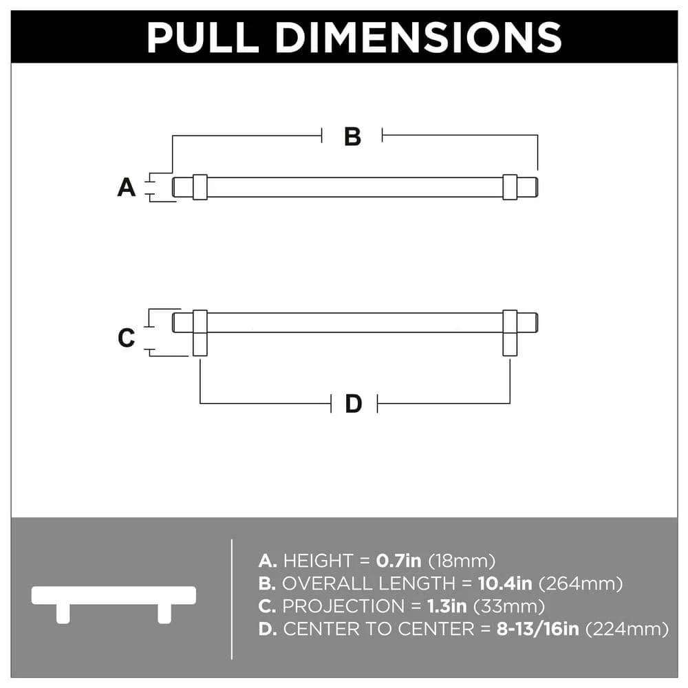 Simple is beautiful. Put the finishing touch on a room or entire home quickly with beautiful furniture handles that can go from the kitchen to the bedroom effortlessly. As a kitchen cabinet handle or a drawer pull, the Simple Wrapped Bar black cabinet pull is the sophisticated cabinet hardware to complete your decor. This black pull features sleek lines with a 8-13/16 in. center-to-center, offering a comfortable grip on your cabinets and drawers. We offer modern trends, priced right for you. Made by Franklin Brass with over 70-years in cabinet hardware, this line of modern pulls gives you quality at a practical price. This 10-pack of black cabinet handles is a fantastic value to upgrade your kitchen cabinets or other furniture hardware needs.