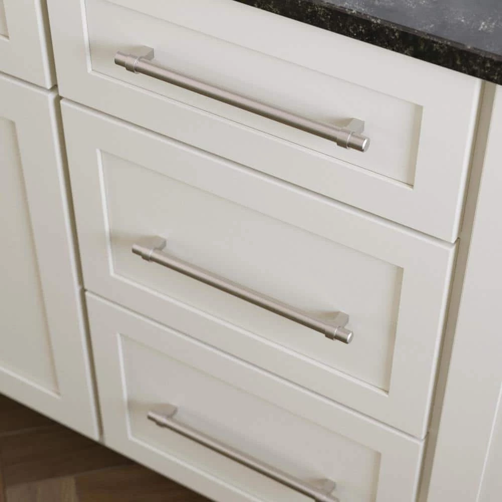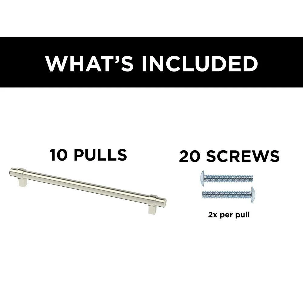 Simple is beautiful. Put the finishing touch on a room or entire home quickly with beautiful furniture handles that can go from the kitchen to the bedroom effortlessly. As a kitchen cabinet handle or a drawer pull, this lustrous silver cabinet pull is a lean and smooth cabinet hardware standout. The Simple Wrapped Bar handle in stainless steel finish features sleek lines with a 8-13/16 in. center-to-center, offering a comfortable grip on your cabinets and drawers. We offer modern trends, priced right for you. Made for you by Franklin Brass – with over 70-years in cabinet hardware – this line of modern pulls gives you pride in your home at a practical price. This 10-pack of silver cabinet hand1les is a fantastic value to upgrade your kitchen cabinets or other furniture hardware needs.