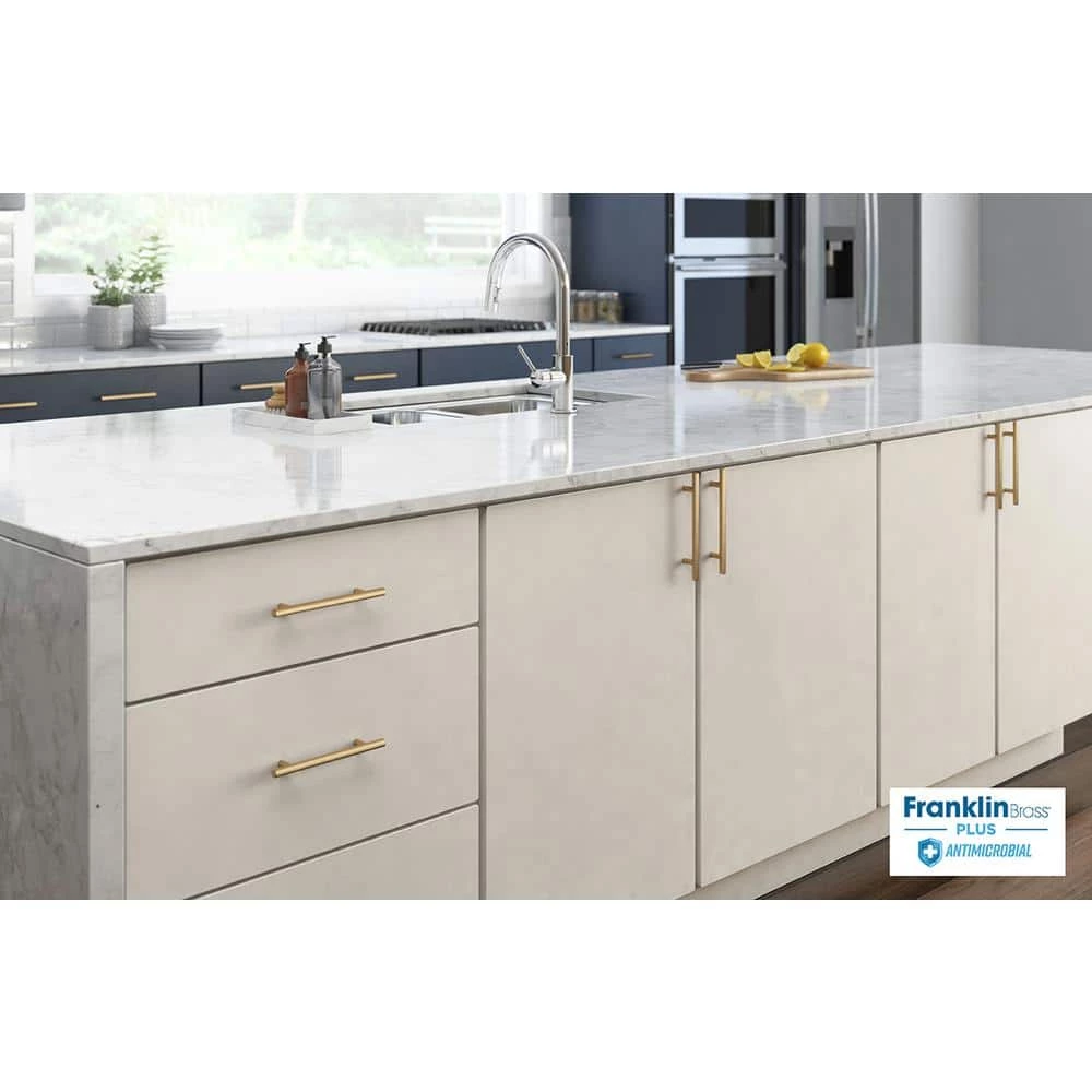 We could all use a little bit of help around the house. What about a solution to reduce microbial growth on high-touch surfaces? Franklin Brass Plus Antimicrobial gives your product continuous protection against microbes – and you don’t even have to ask. The antimicrobial finish uses silver ions that are already built into your drawer pulls and the protection lasts the life of your product. The antimicrobial finish is safe, non-toxic, and it doesn’t rub off like sprays or coatings.