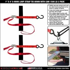 SNAP-LOC 4 ft. x 1 in. S-Hook Cam Strap with Hook and Loop Storage Fastener in Red (2-Pack)