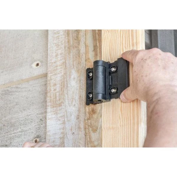 This heavy duty screen door hardware kit includes 2 spring loaded hinges and a dummy handle/knob set. The hardware is all vinyl and rust free for easy maintenance. The hinges are installed easily and come with screw covers for a seamless, clean finish. All screws and accessories needed to install a screen door are included in this heavy duty screen door hardware kit.