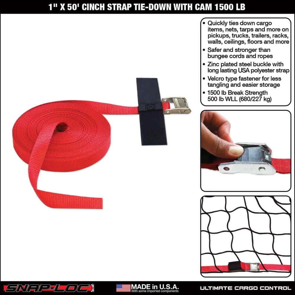 - EASIER: Bundles/ties down pipe, lumber, ladders, nets, tarps and more to pickups, trucks, trailers, racks, walls, floors, ceilings and more. Cam buckle cinches items firmly in place.