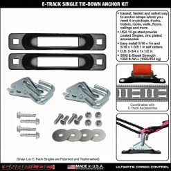 The Snap-Loc E-Track System is the easiest, fastest and safest way to tie-down cargo items on pickups, trucks, trailers, racks, walls, floors, ceilings and more! THE PROBLEM: Cheap hook straps come loose, break often causing valuable items to dangerously fall, tangle into a frustrating ball of spaghetti and waste your time and money. THE SOLUTION: The Snap-Loc E-Track Single System securely anchors all sized cargo items where you need it, uses long lasting 2 inch wide professional movers straps and stows away neatly in small spaces. You’re going to love it! Our E-Track System also coordinates with the Snap-Loc Dolly System to easily move more in less time with high capacity smooth rolling casters, E-Track Strap attachment and Push Cart Panel Cart conversion.