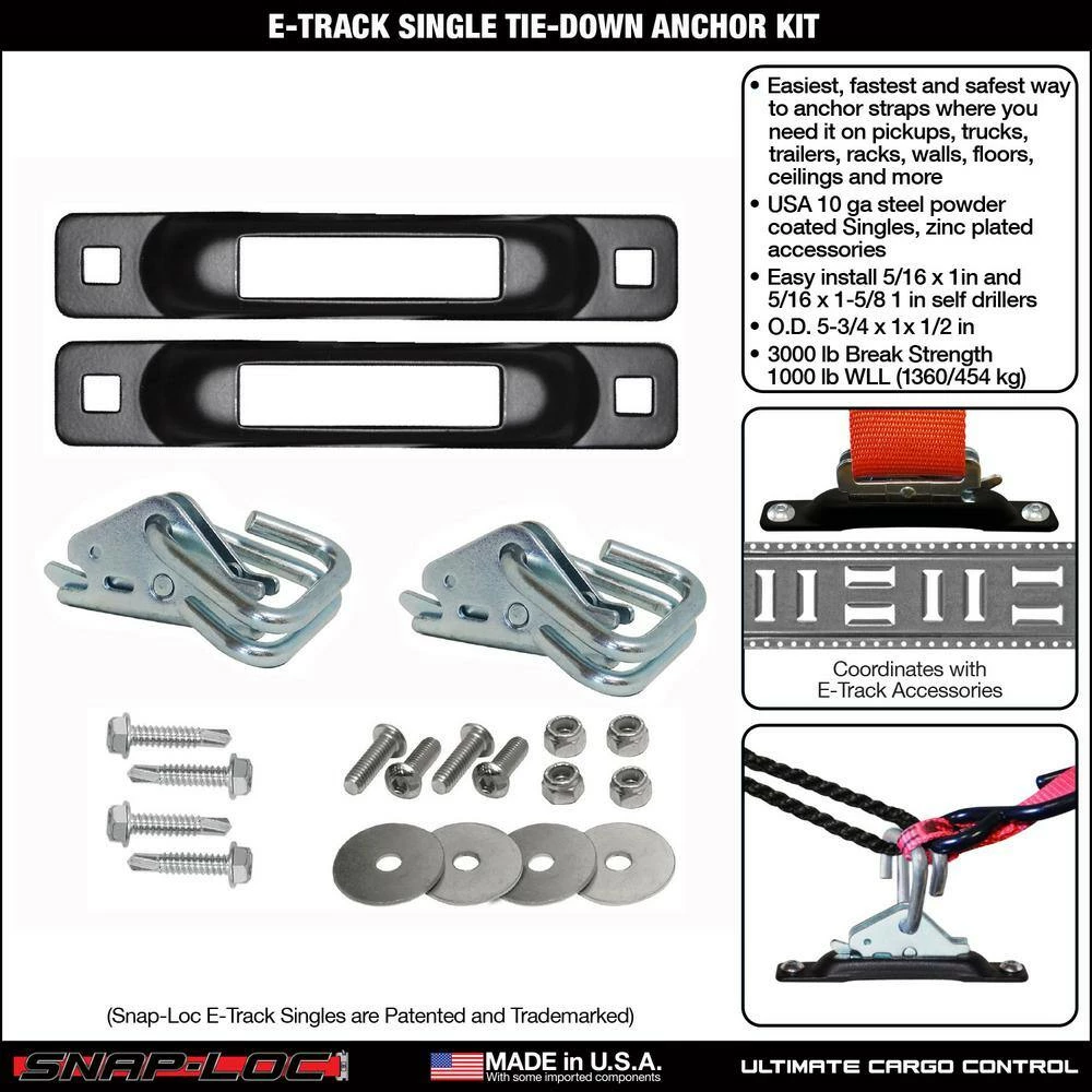 - MADE IN USA BUILT TO LAST: USA heavy duty 10 gauge steel powder coated to resist contaminants/weather. Coordinates with Snap-Loc E-Track Dolly System and fits industry standard E-Track accessories.